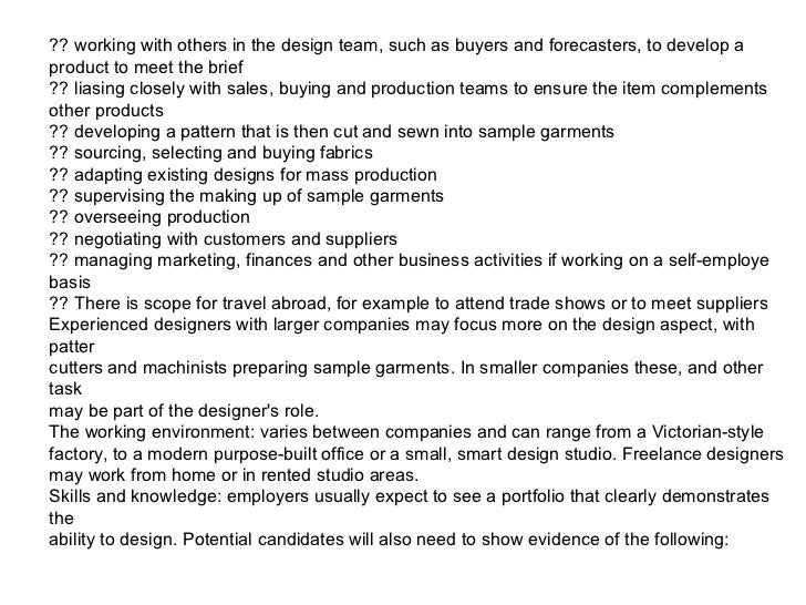 Is quite different from working for a high street fashion chain store, as inde- pendents mostly buy ranges of branded merchandise without the opportunity to become involved in the design or development of the product. ... Read Full Source