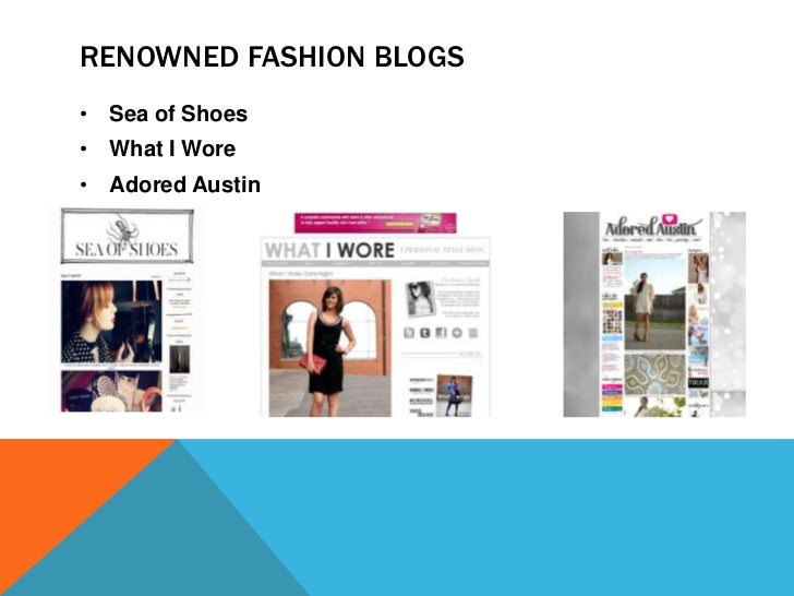Ion blogging and how this helps them gain self-esteem and a positive self-image which then translate into alternative sources of cultural and social capital. Thus fashion blogs are particularly interesting in terms of the sociology of fashion because they can be located at the intersection ... Fetch Here
